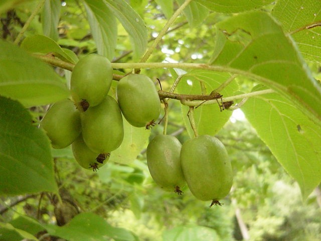 山道を散歩していたら、サルナシの実を見つけました。 別名コクワ、果皮に毛は生えてませんが小さなキウイといったところ。 味もキウイフルーツに良く似ています。 収穫はこれから。