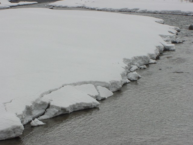 川には随所に雪庇が張り出していて、その下を流れが通っていたりします。