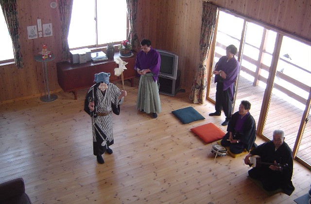 2005/01/03: "見附神楽: おかめは月山和紙の三浦さん"