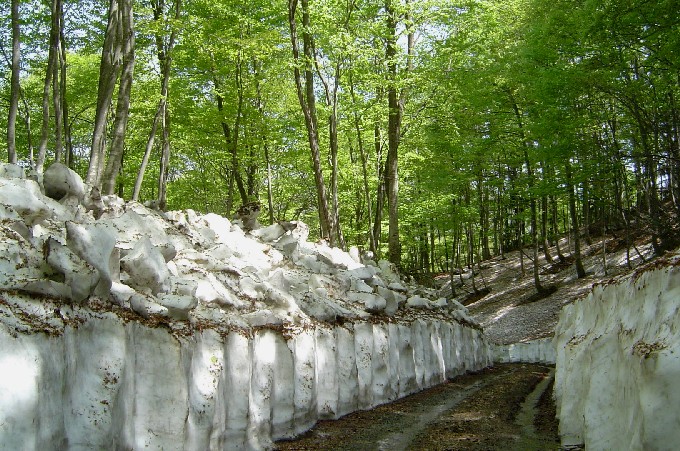 悌二郎さんのブナ林を抜ける林道にはまだ1mほどの残雪があって、やっと除雪が終わったばかりです。