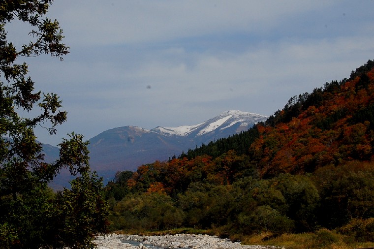 今朝は初霜、しばらくぶりに姿を見せた月山は雪、そして大井沢は紅葉真っ盛りです。